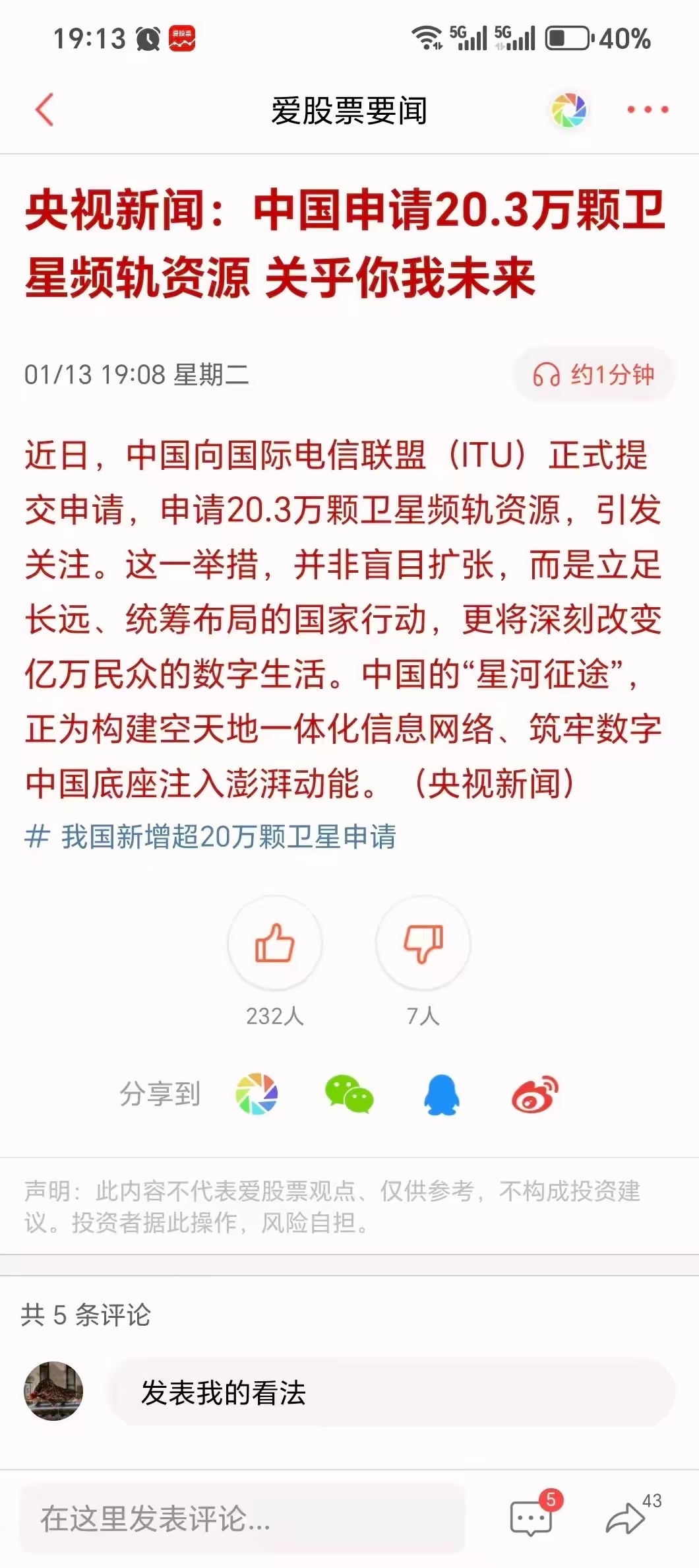 $北斗星通(SZ002151)$ 今晚 央视新闻