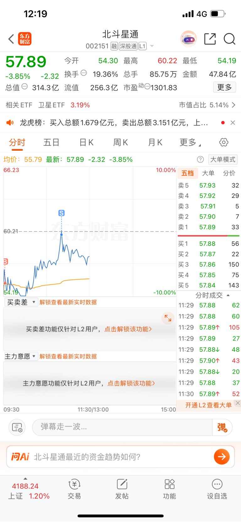$北斗星通(SZ002151)$ 做了个t