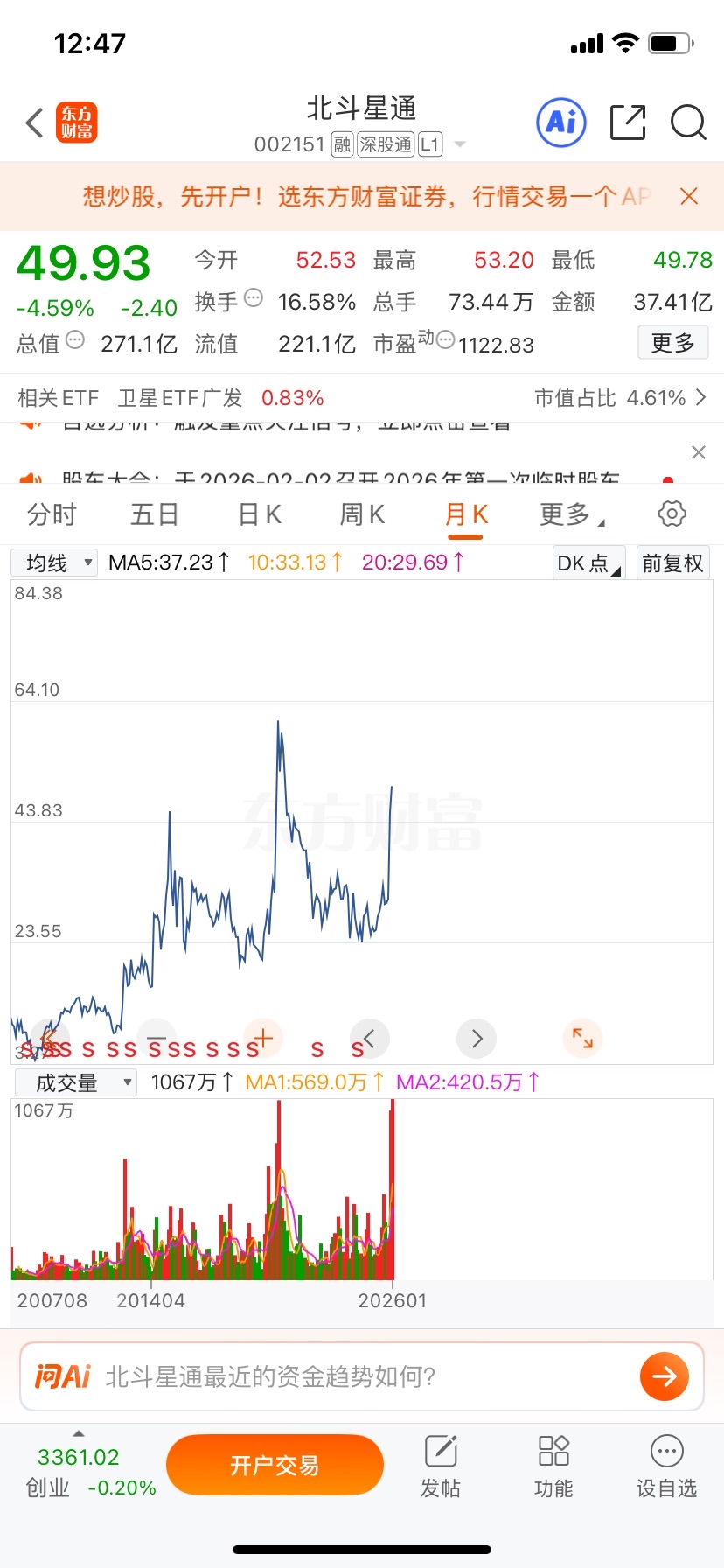 $北斗星通(SZ002151)$ 芯片+无人驾驶+航天卫星概念,你觉得它还会创新高吗?我认为未来可期~