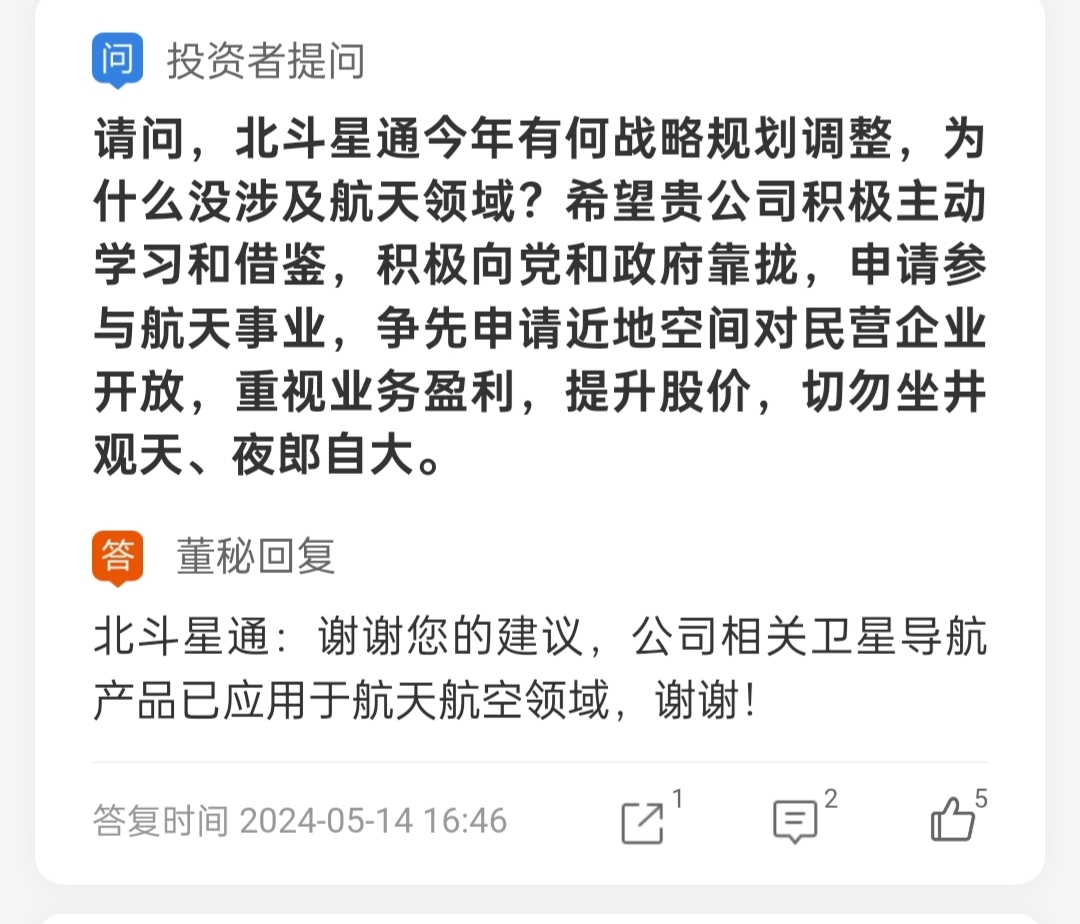 $北斗星通(SZ002151)$ 商业航天咱是正宗的,怕什么,业绩年报一定会好的,也有业绩支撑,给自己打打气,北斗4代也未来可期,直接涨到一百