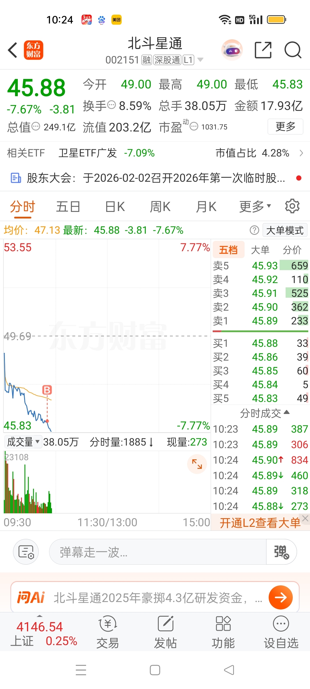 $北斗星通(SZ002151)$ 抄不到底,今天进的全拖走