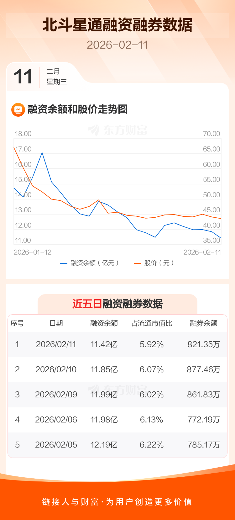 交易所最新数据显示,北斗星通于2026年2月11日获融资买入6137.88万元,融资偿还1.04亿元,当日融资净偿还4251.67万元。目前,该股融资余额11.42亿,占流通市值比例为5.92%。