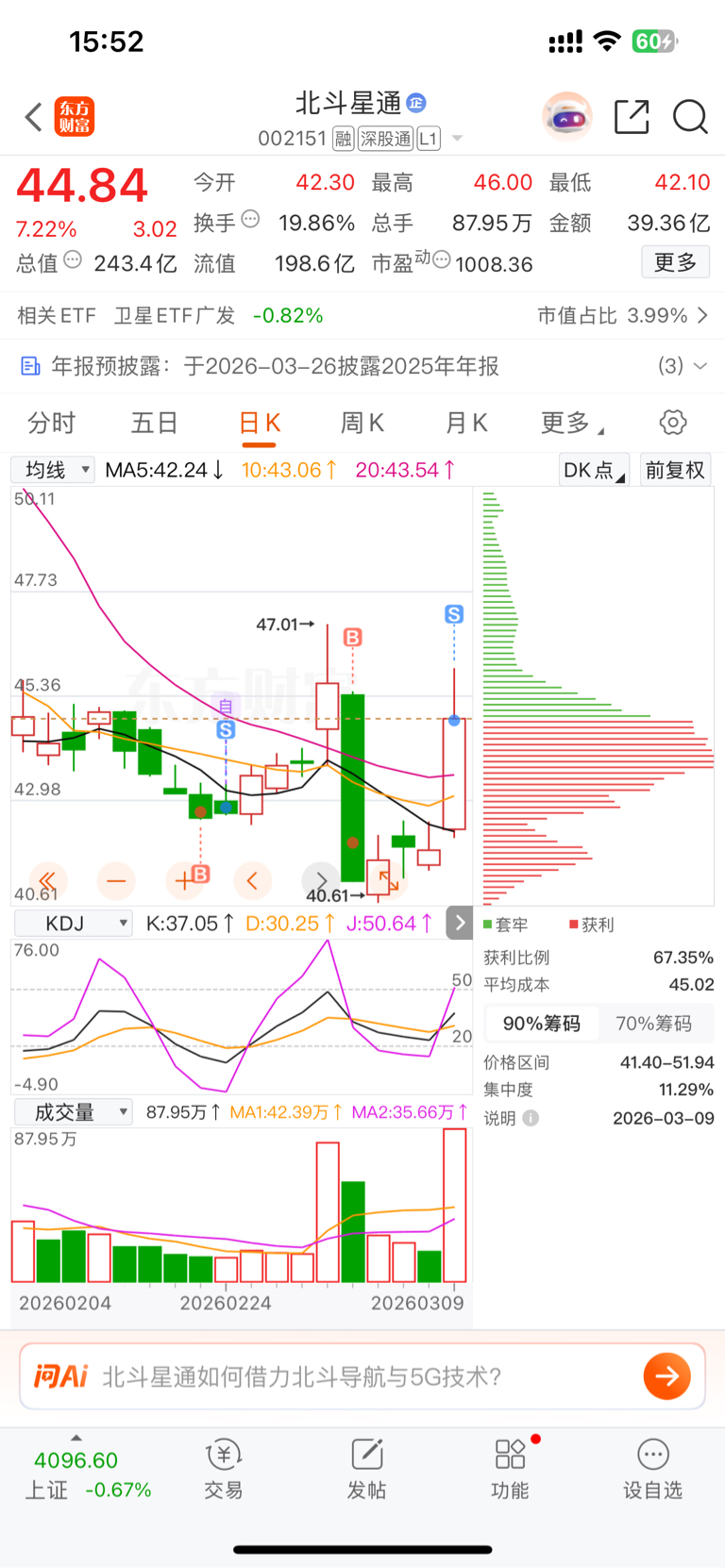 $北斗星通(SZ002151)$ #收盘点评# 41.99买的,见好就收。