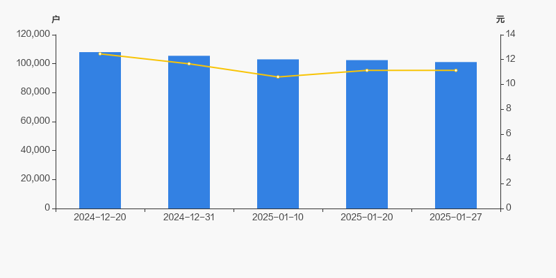 2024年12月20日至今,公司股东户数有所下降,区间跌幅为6.35%。2024年12月20日至2025年1月27日区间股价下降10.67%。