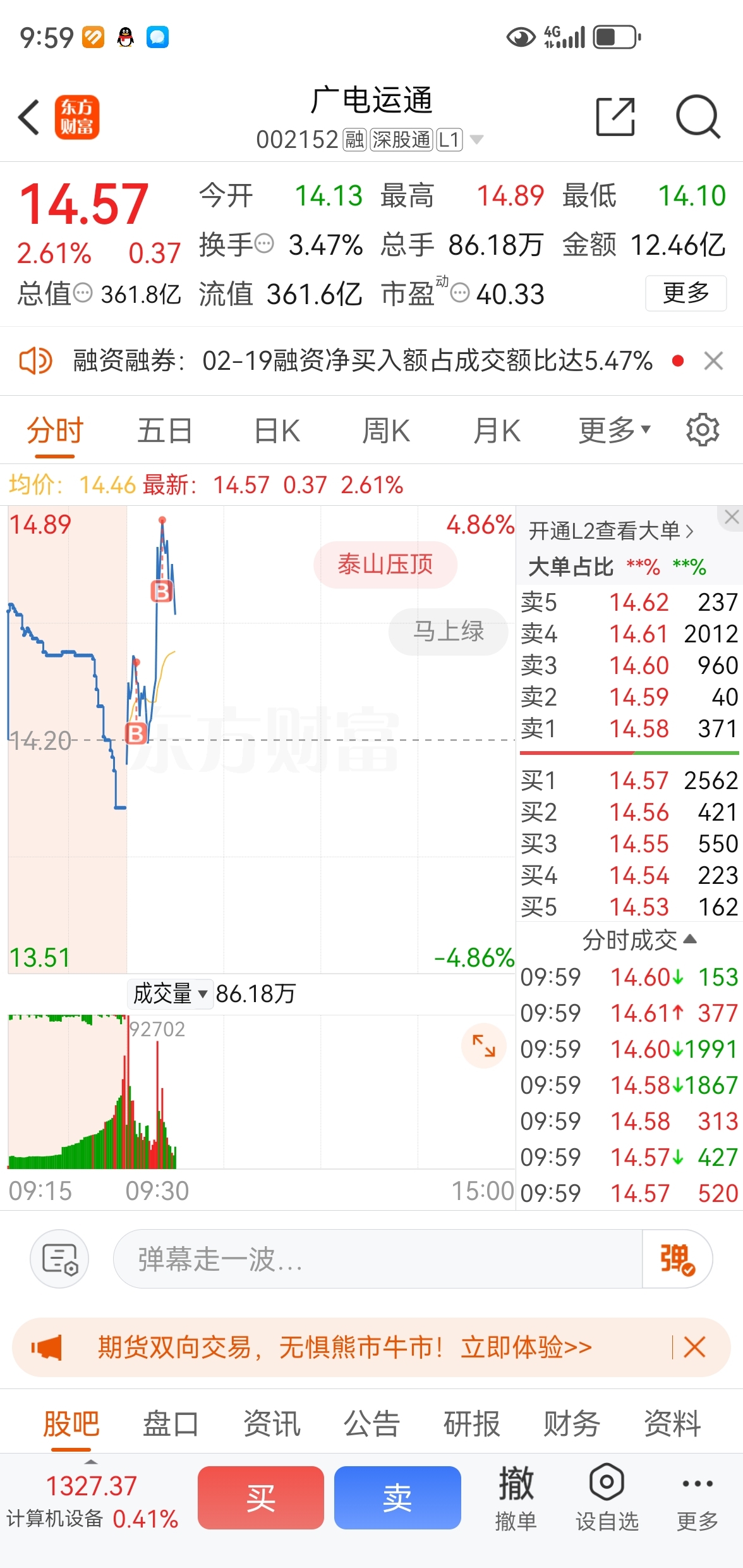 $广电运通(SZ002152)$ 我一买就