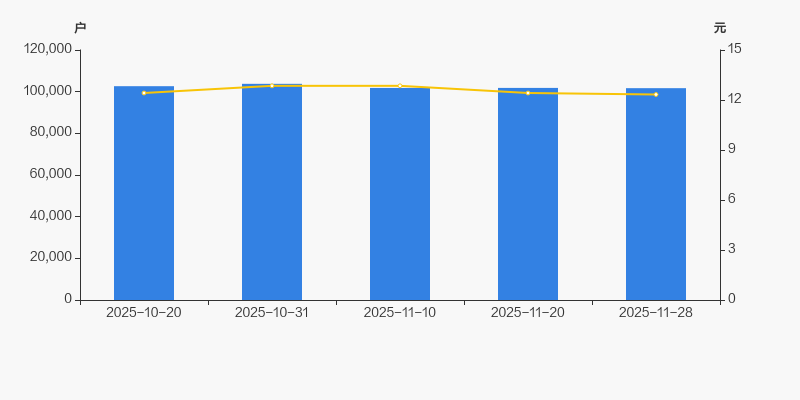 2025年10月20日至今,公司股东户数有所下降,区间跌幅为0.92%。2025年10月20日至2025年11月28日区间股价下降0.72%。