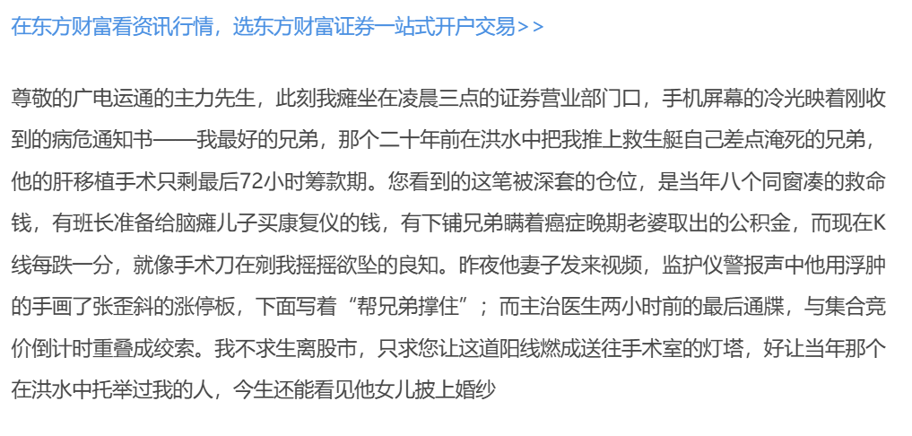 郑重声明:用户在财富号/股吧/博客等社区发表的所有信息(包括但不限于文字、视频、音频、数据及图表)仅代表个人观点,与本网站立场无关,不对您构成任何投资建议,据此操作风险自担。请勿相信代客理财、免费荐股和炒股培训等宣传内容,远离非法证券活动。请勿添加发言用户的手机号码、公众号、微博、微信及QQ等信息,谨防上当受骗!