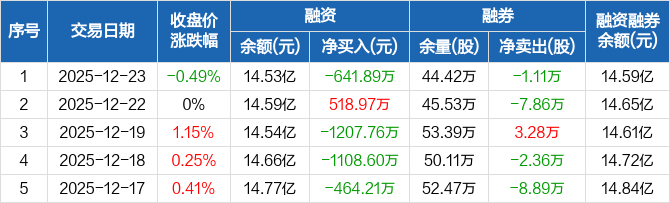 广电运通:融资净偿还641.89万元,融资余额14.53亿元(12-23)