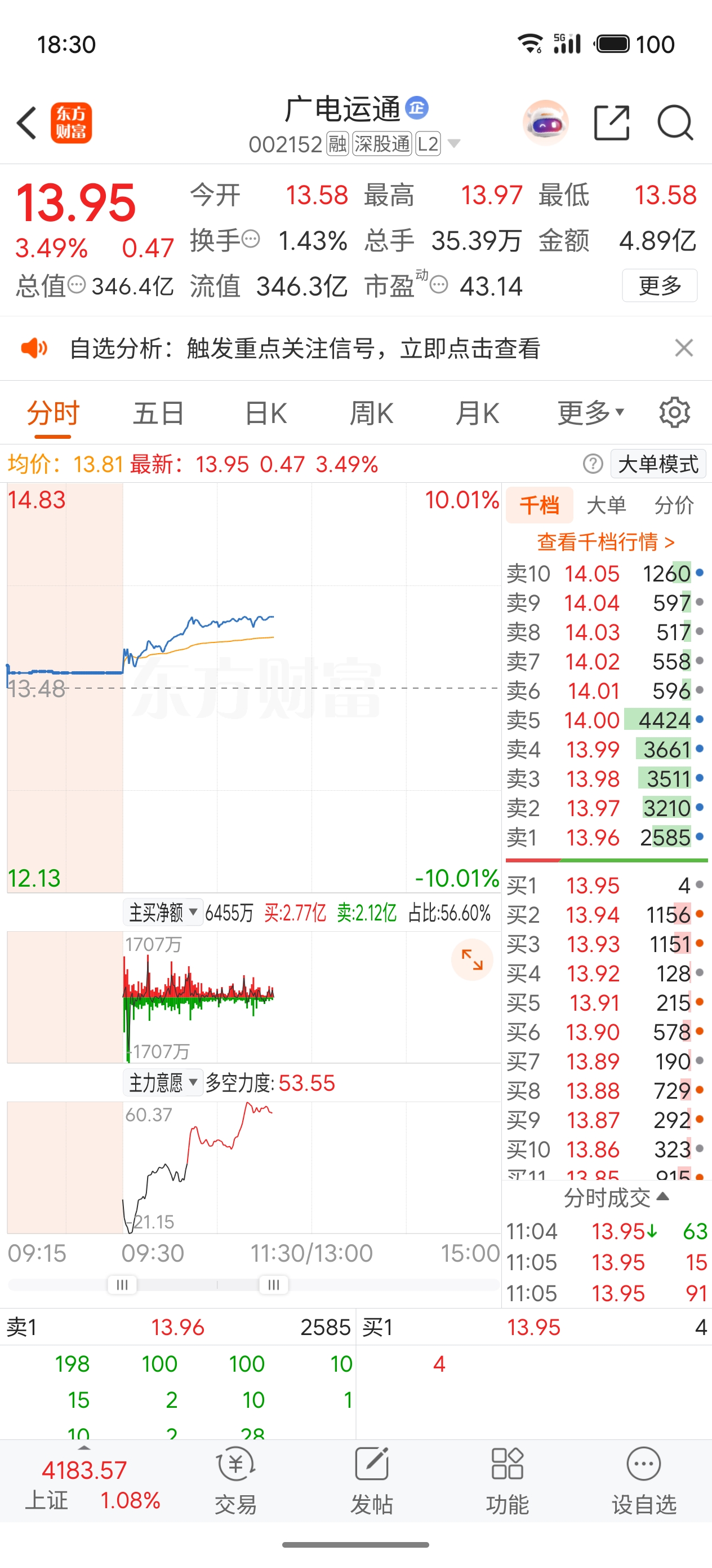 $广电运通(SZ002152)$ 广电运通这只票主力还是有意愿拉升的,只是时间问题#强势机会# #炒股日记# #股市怎么看#