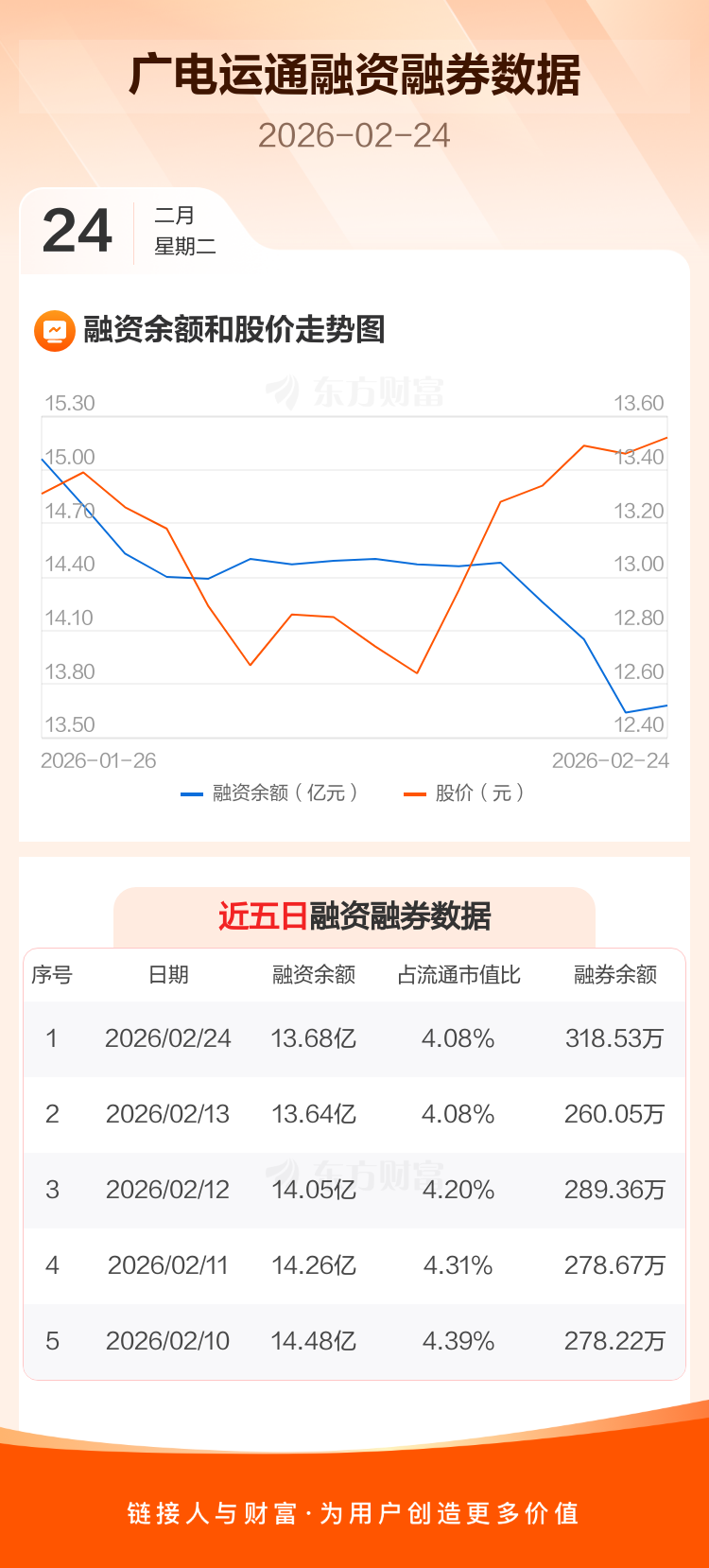 交易所最新数据显示,广电运通于2026年2月24日获融资买入4481.49万元,融资偿还4033.19万元,当日融资净买入448.31万元。目前,该股融资余额13.68亿,占流通市值比例为4.08%。