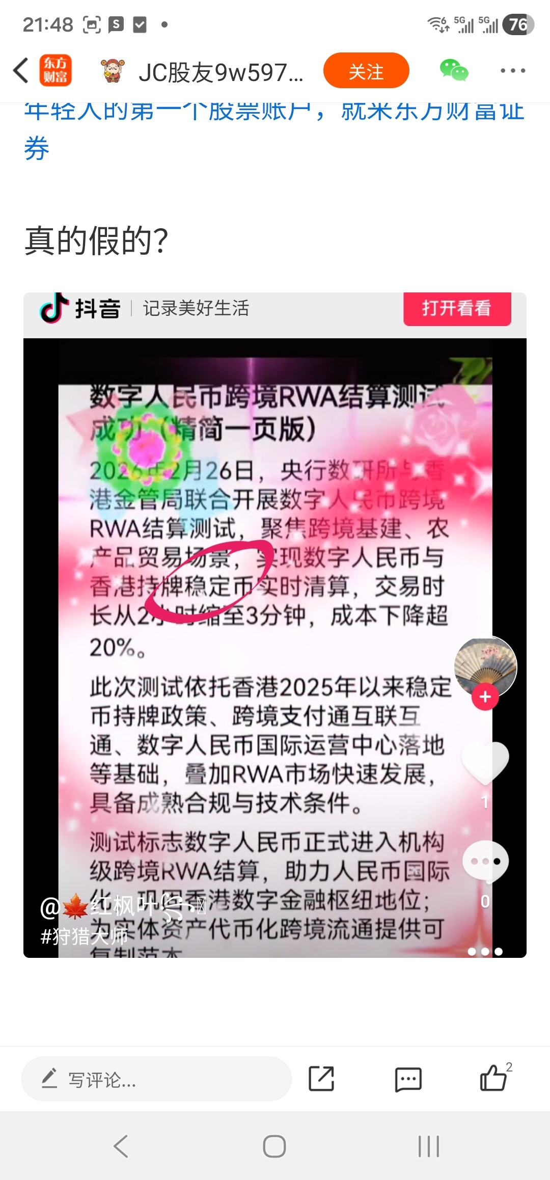 温馨提示: 1.根据《证券法》规定,禁止编造、传播虚假信息或者误导性信息,扰乱证券市场;2.用户在本社区发表的所有资料、言论等仅代表个人观点,与本网站立场无关,不对您构成任何投资建议。用户应基于自己的独立判断,自行决定证券投资并承担相应风险。《东方财富社区管理规定》