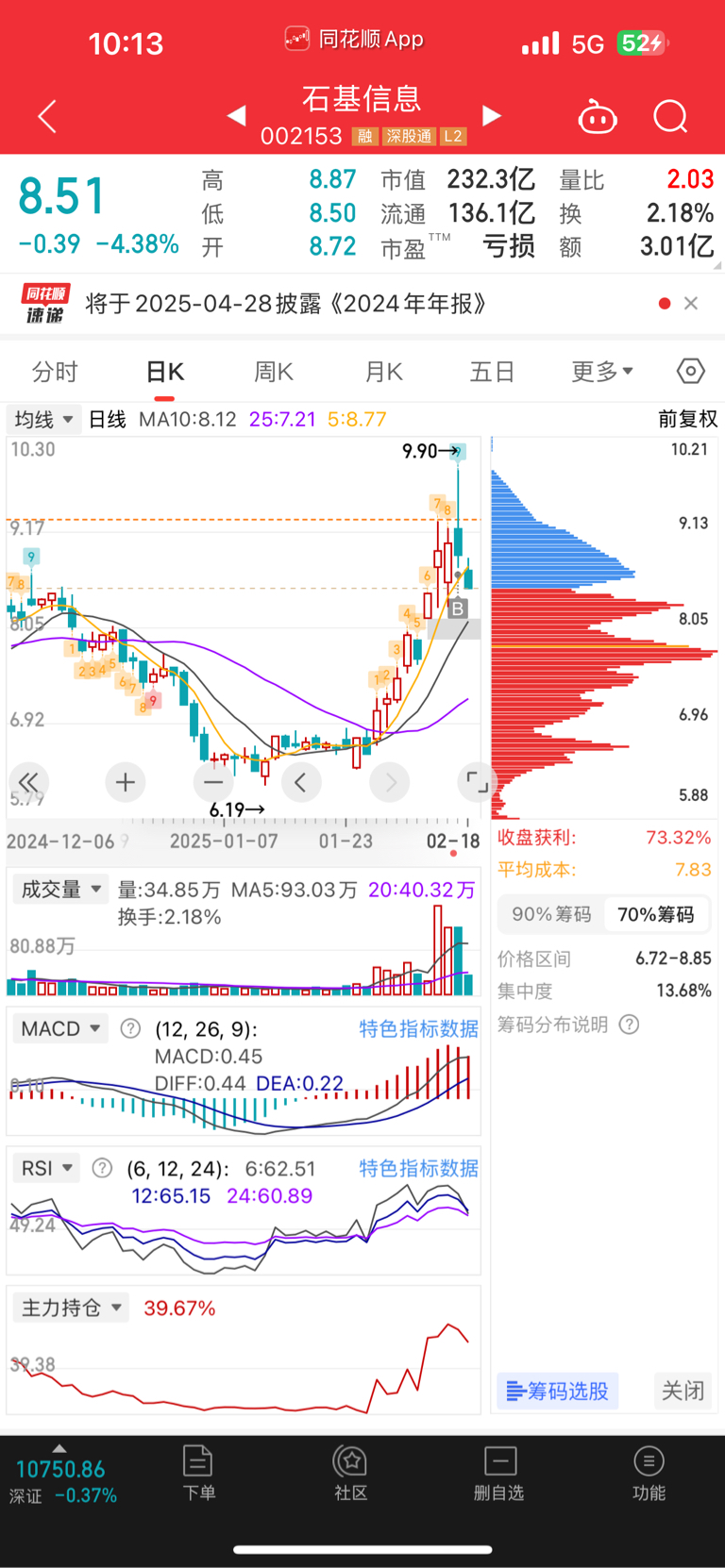$石基信息(SZ002153)$ 昨天刚进,就被套。唉………