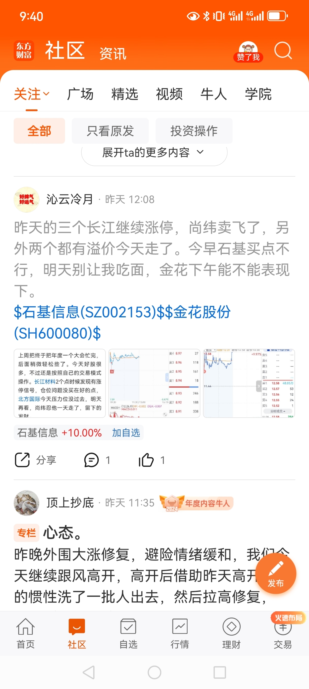 昨天买的石基涨停,金花没反应走了,长江拿了2个板今天走了一半。
