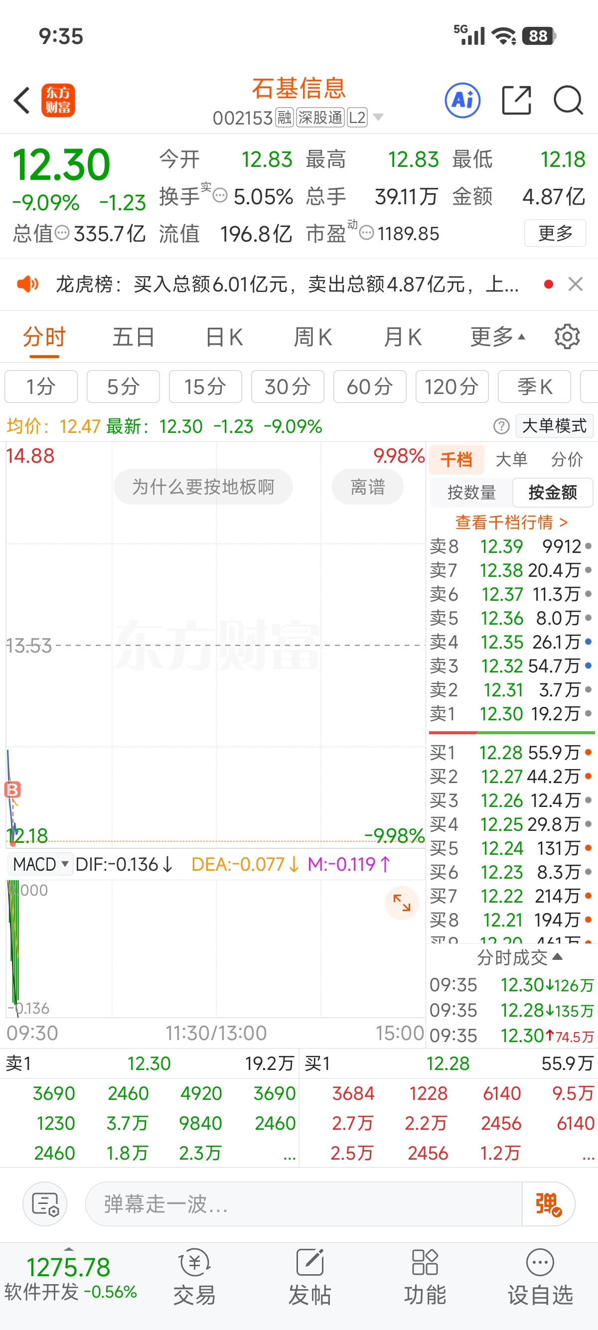 $石基信息(SZ002153)$ 12.21干进来了,不会吃跌停吧