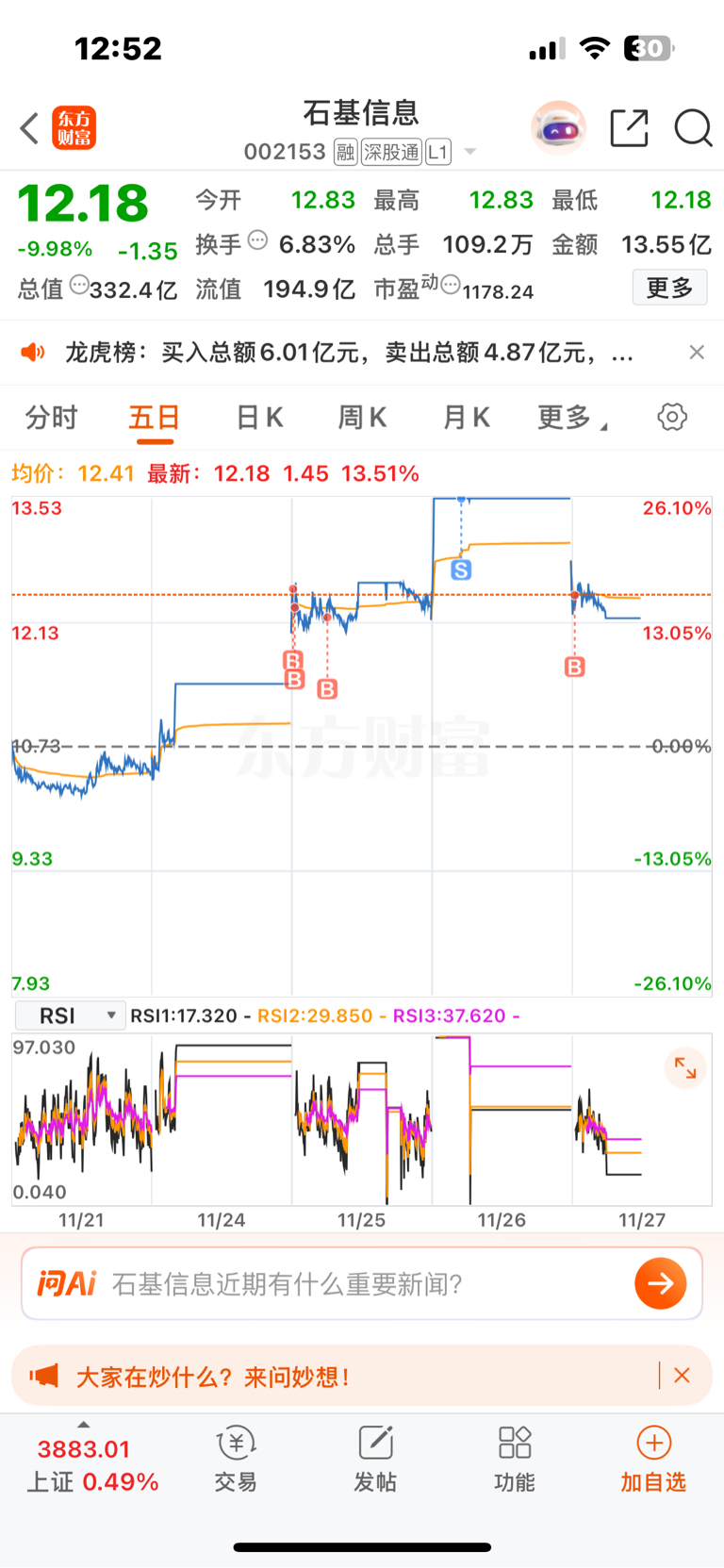 $石基信息(SZ002153)$ 死基,昨天在板上我就预判到了你今天要瘟,提前跑了。今天看你跌了8个点,以为可以博个鸡腿,你给我按跌停,吃基毛了,卡到难受