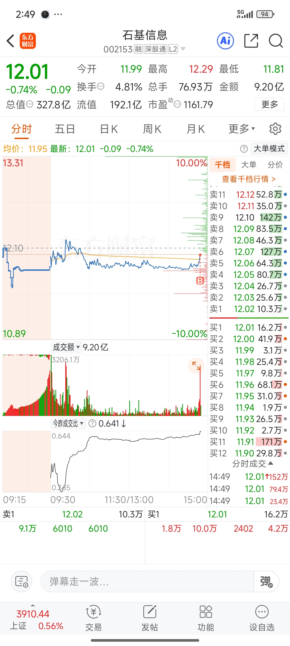 $石基信息(SZ002153)$ 开仓买入,开帖