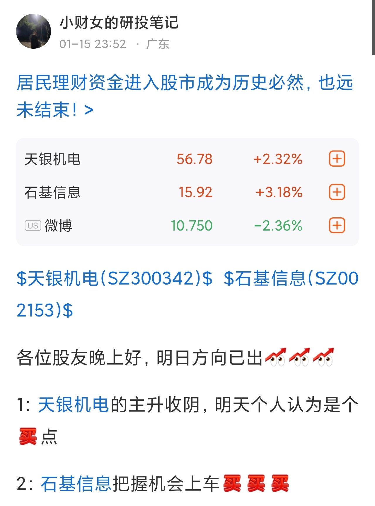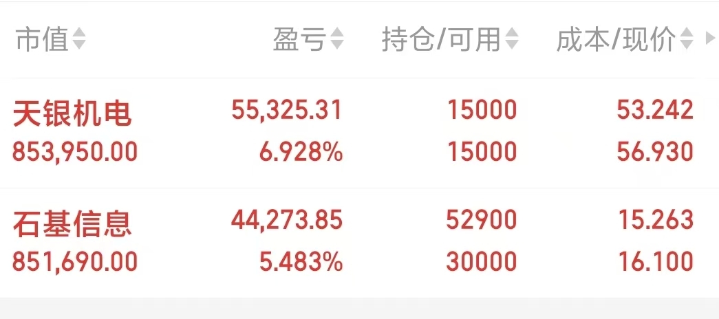 石基信息开盘加了一笔,天银机电也还在车上没动