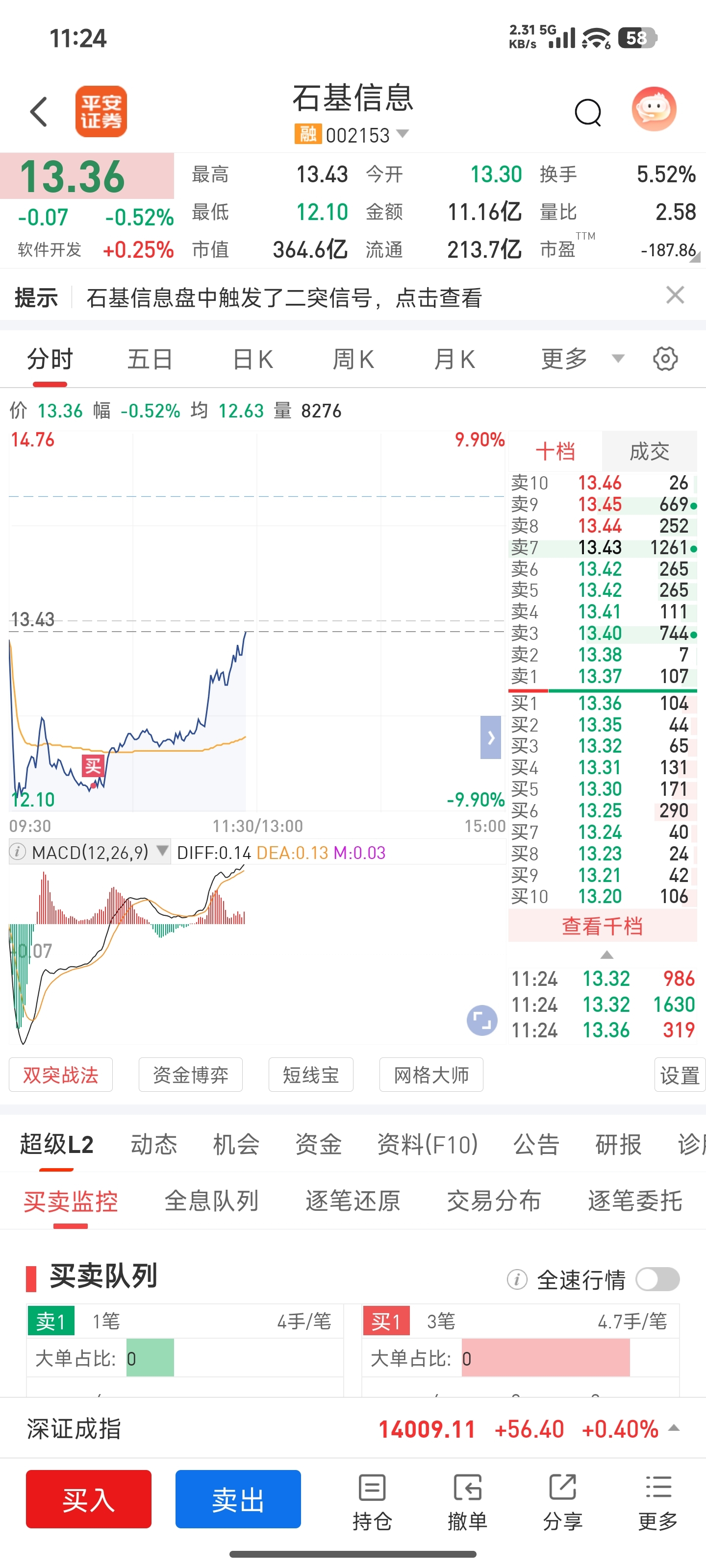 $石基信息(SZ002153)$ @巴菲特弟子卖飞特 起床晚了,今天拉红卖