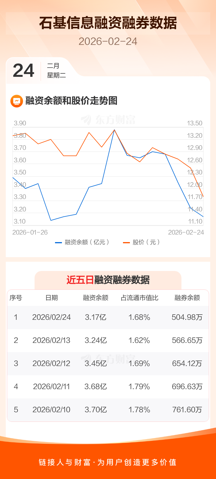 交易所最新数据显示,石基信息于2026年2月24日获融资买入4019.56万元,融资偿还4743.63万元,当日融资净偿还724.07万元。目前,该股融资余额3.17亿,占流通市值比例为1.68%。