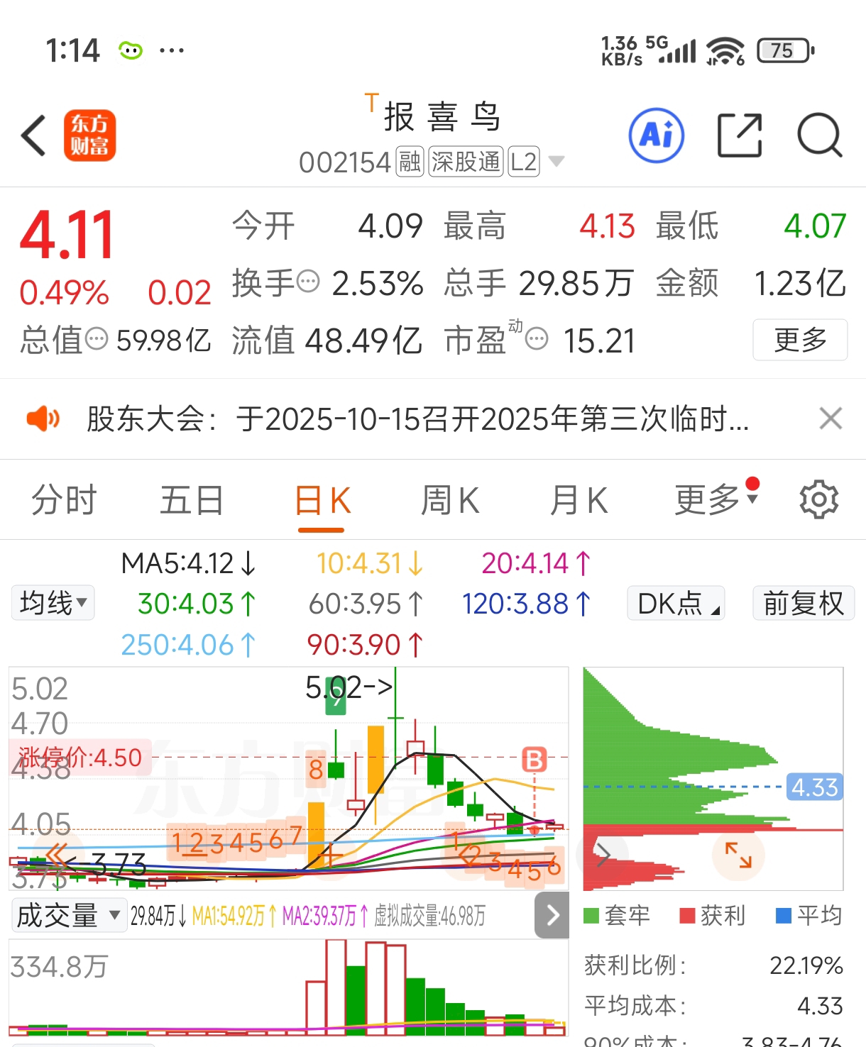 $报 喜 鸟(SZ002154)$ 昨日买入,这个看多少空间