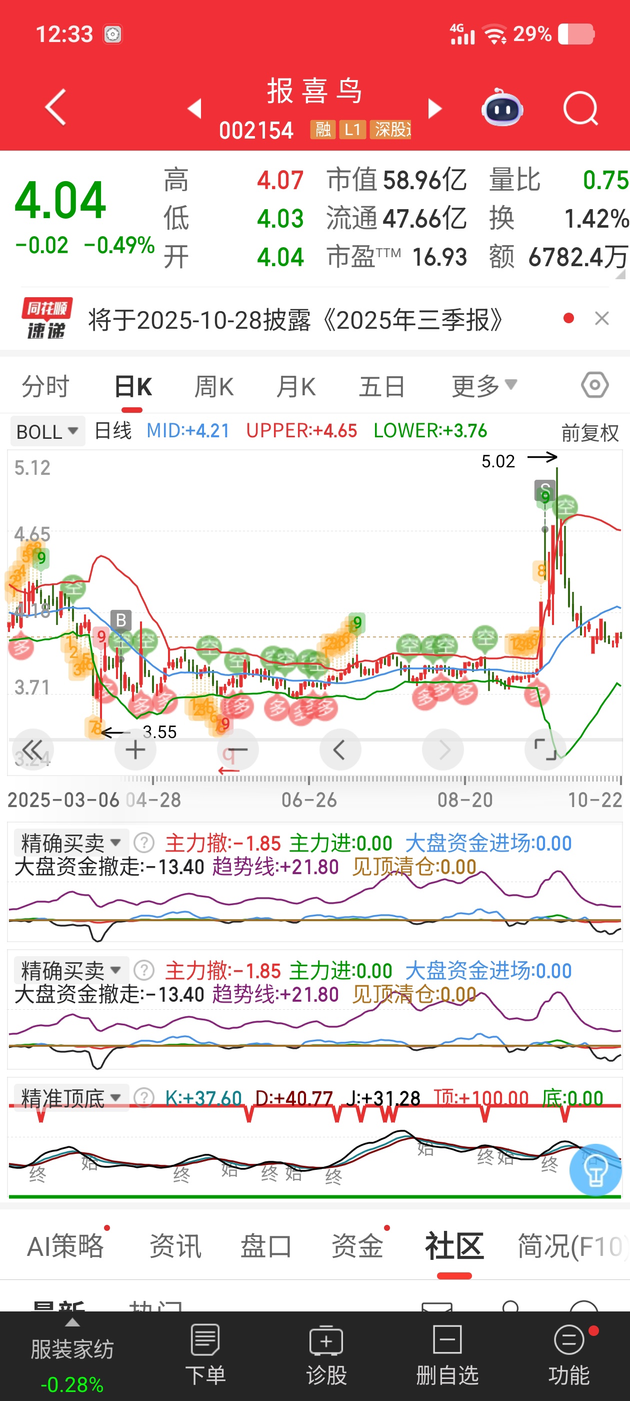 $报 喜 鸟(SZ002154)$ 幸好盈十点时卖了