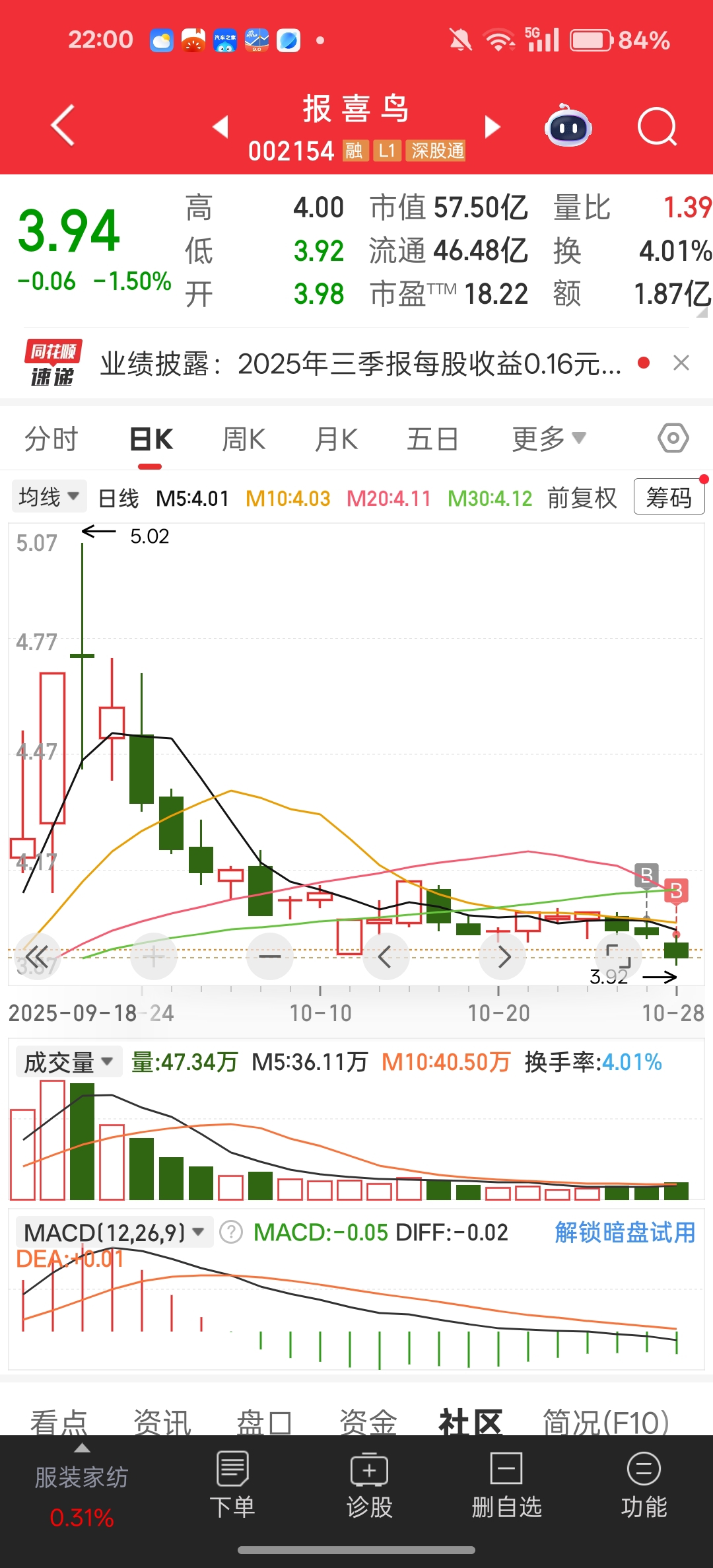 $报 喜 鸟(SZ002154)$ 买了,明天有本事砸跌停,我怕你啊?
