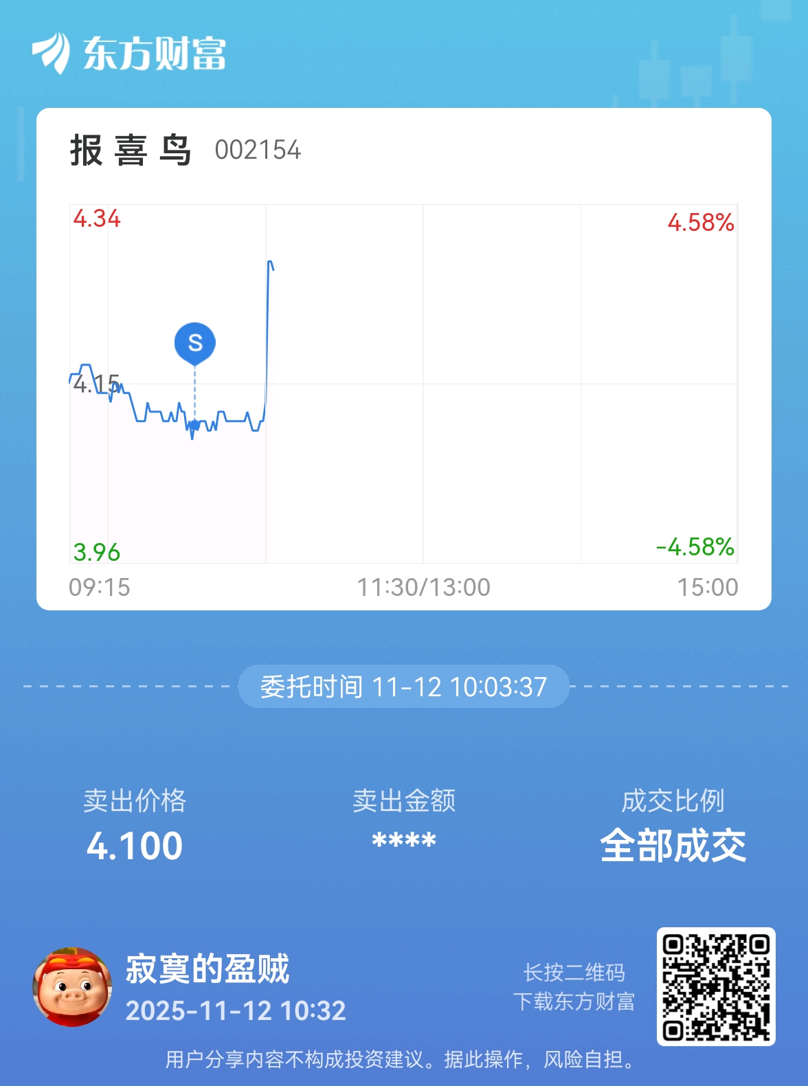 温馨提示: 1.根据《证券法》规定,禁止编造、传播虚假信息或者误导性信息,扰乱证券市场;2.用户在本社区发表的所有资料、言论等仅代表个人观点,与本网站立场无关,不对您构成任何投资建议。用户应基于自己的独立判断,自行决定证券投资并承担相应风险。《东方财富社区管理规定》