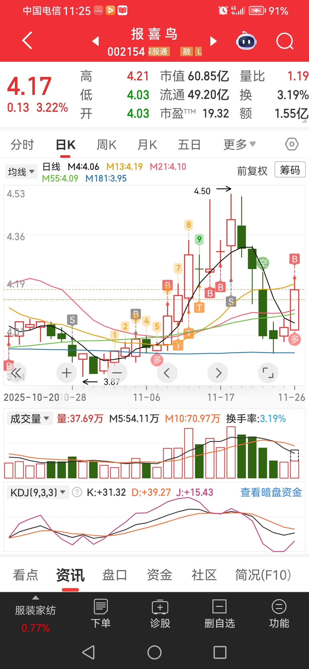 $报 喜 鸟(SZ002154)$ 哥又来了,希望给点面子#炒股日记#