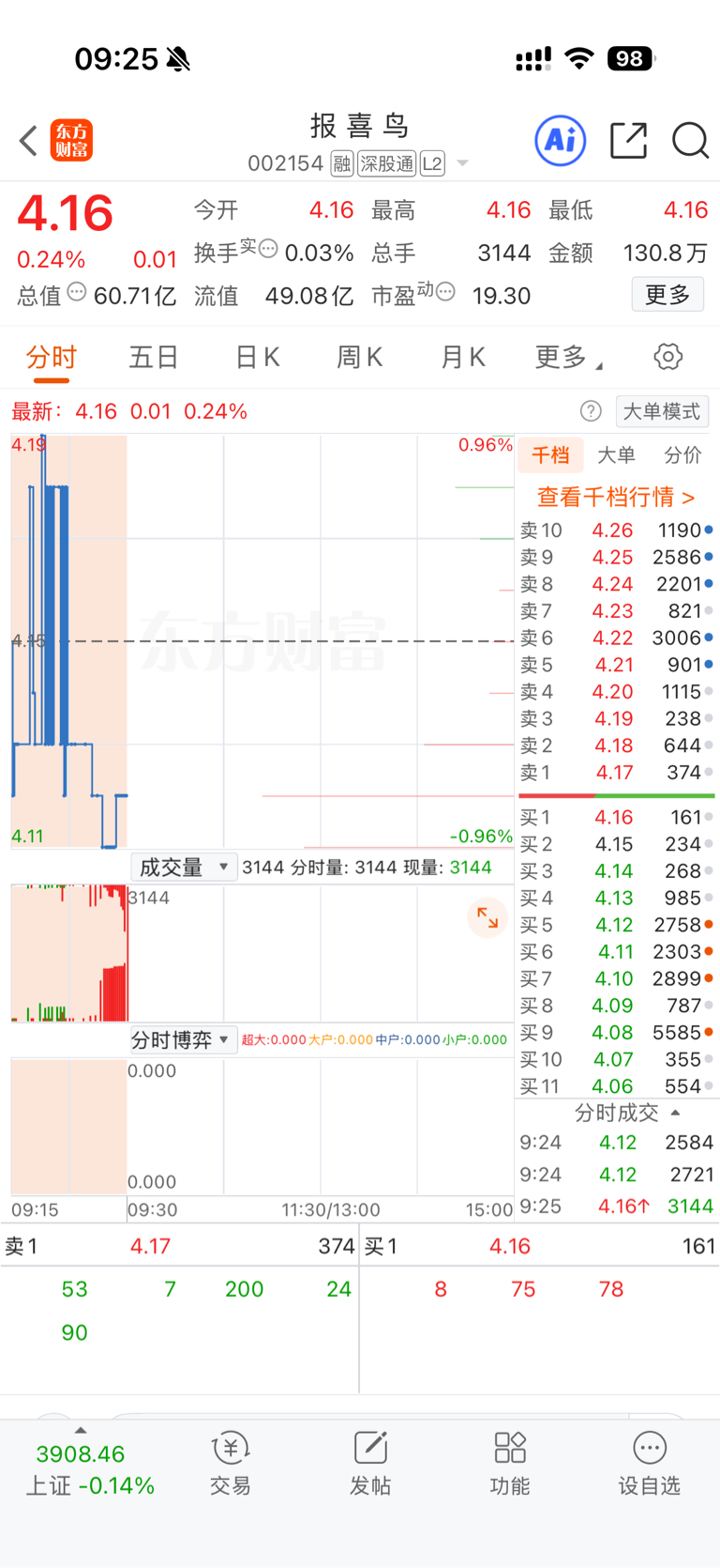 $报 喜 鸟(SZ002154)$ 这竞价笑了
