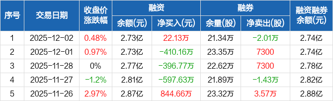 报喜鸟:融资净买入22.13万元,融资余额2.73亿元(12-02)