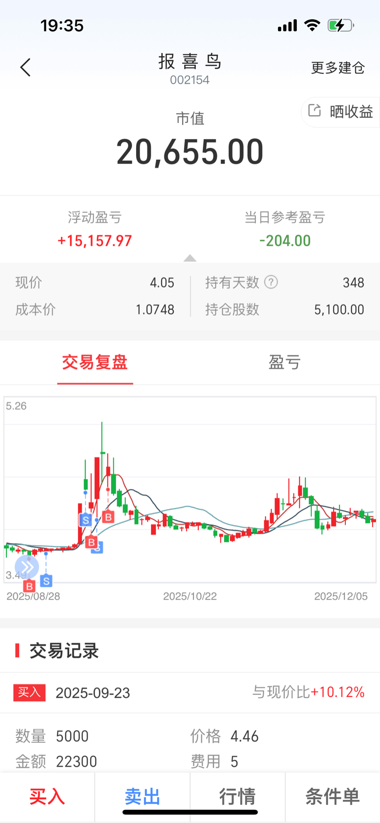 $报 喜 鸟(SZ002154)$ 最后买的5000股还没回本