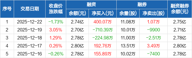 报喜鸟:融资净买入400.07万元,融资余额2.74亿元(12-22)