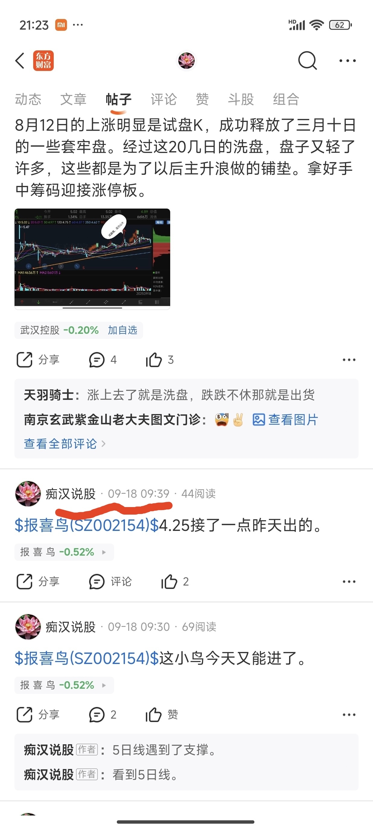 $报 喜 鸟(SZ002154)$ 报喜鸟今年4月17日,我进过一次,中途做过t,拿到九月十七涨停后高开出了,回调到4.25又进了一次涨停又出了。是今年我收获最多的一只票。这股成本在3.9附近,可以放心拿,一年做两次,你的收获可以超过90%的股民。