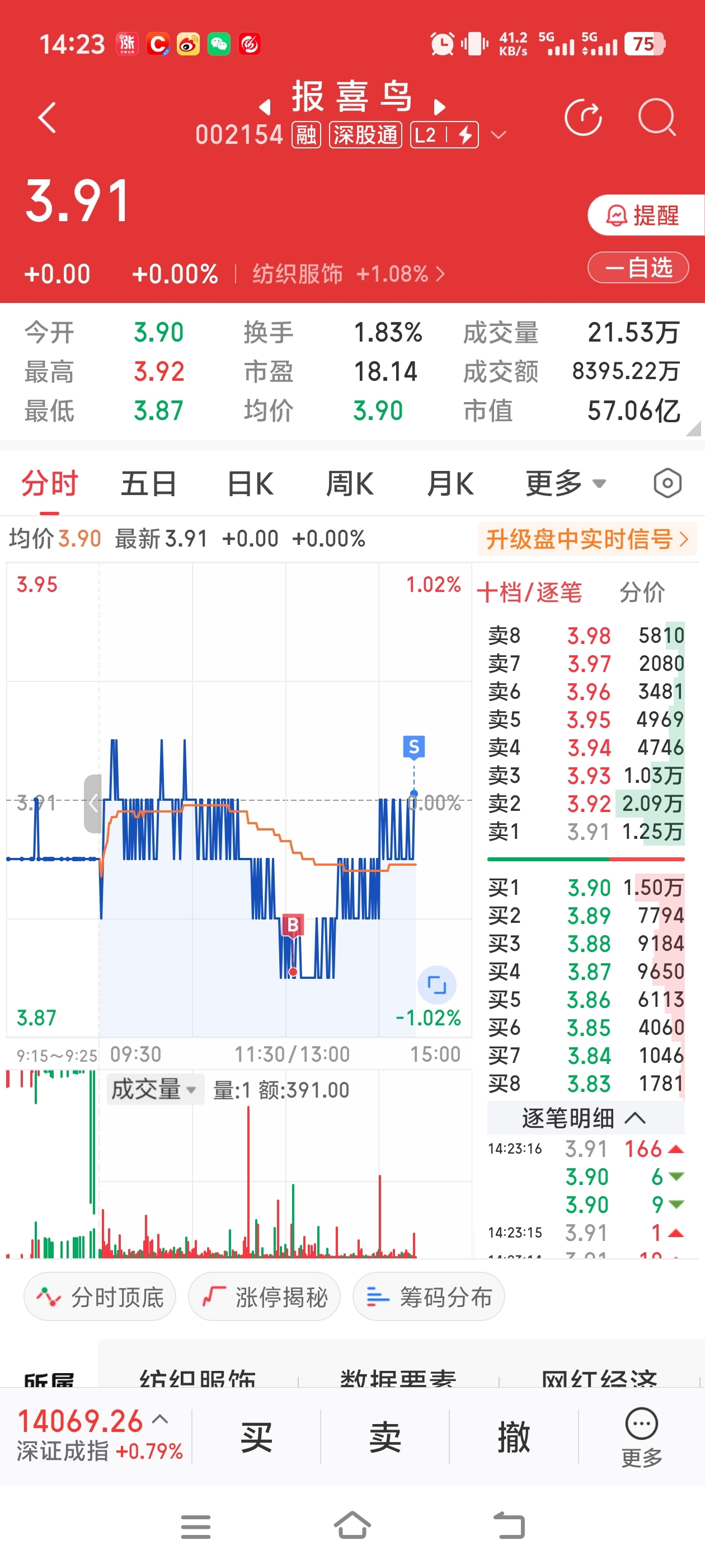$报 喜 鸟(SZ002154)$ 做这票真累,做了3分钱差价!主力最好一分钱波动都不要有!