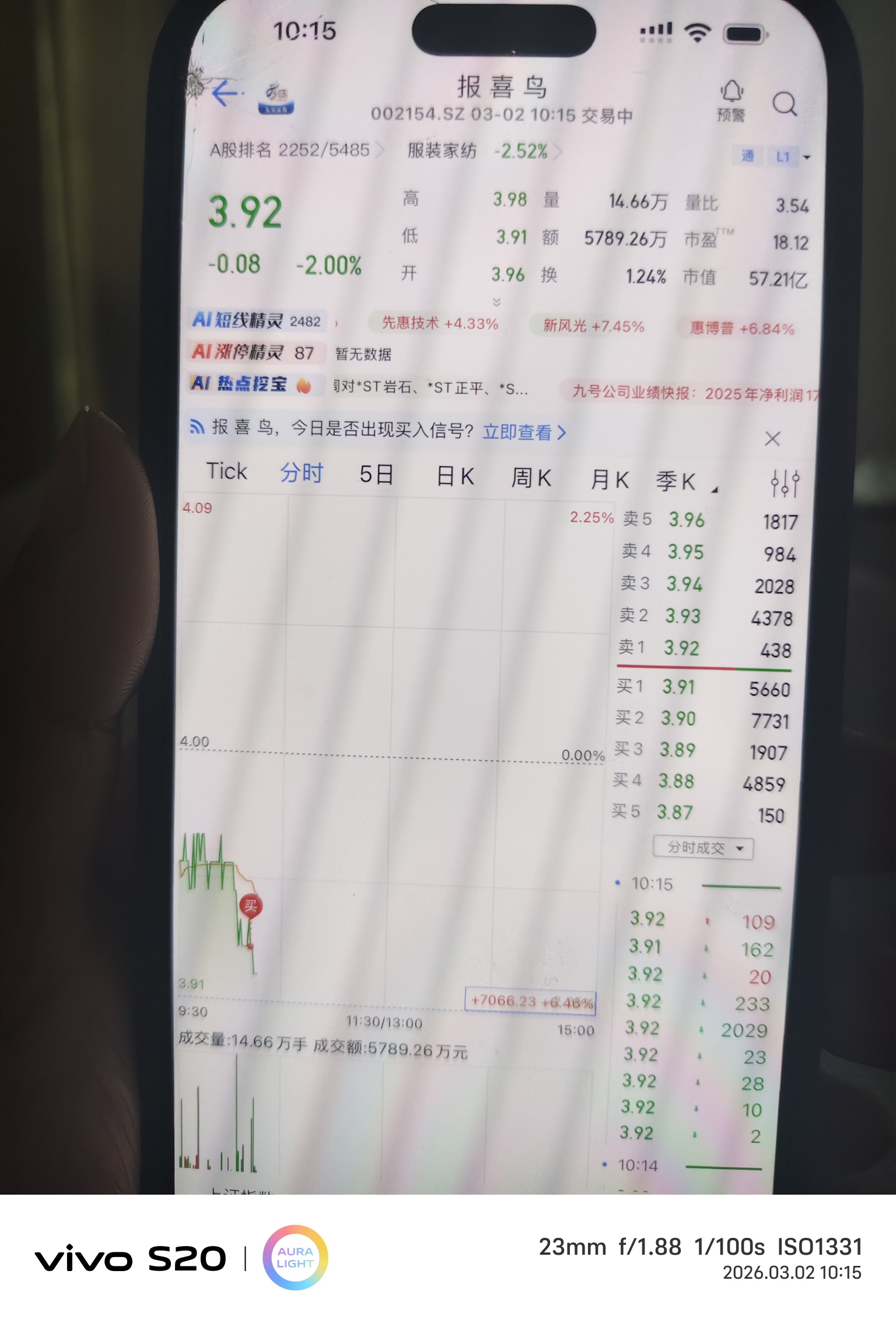 $报 喜 鸟(SZ002154)$ 今天进来抄底了,不会抄在山顶了吧