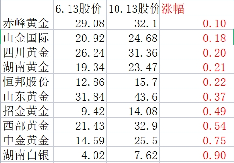 $湖南黄金(SZ002155)$ 近五个月的贵金属板块涨幅排名