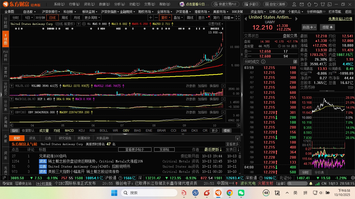美股金属锑股番了6倍,世界锑王就是湖南黄金了,等待发飙