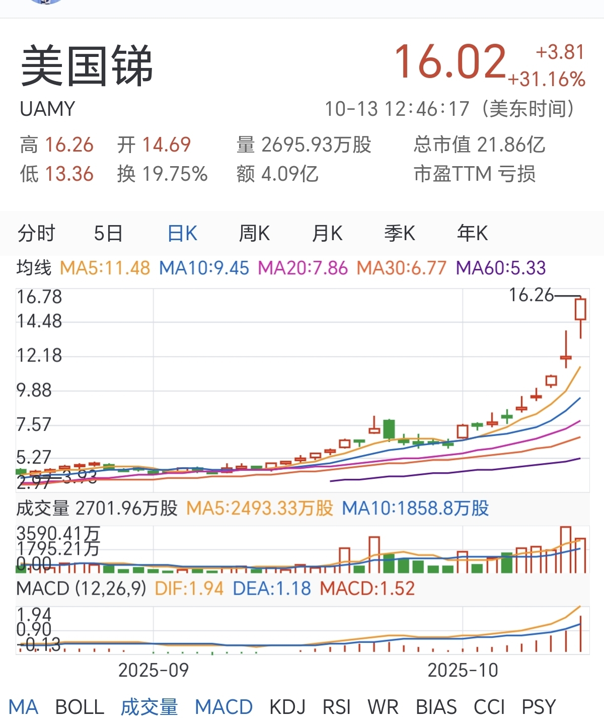 $湖南黄金(SZ002155)$ 我去美国锑现在股价走势