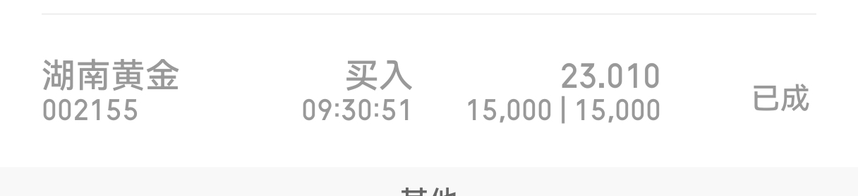 $湖南黄金(SZ002155)$ 进步了,今天没做反T。昨天买,今天继续买,这次非把你买到站上25。今晚能来个第三季度预披露么?