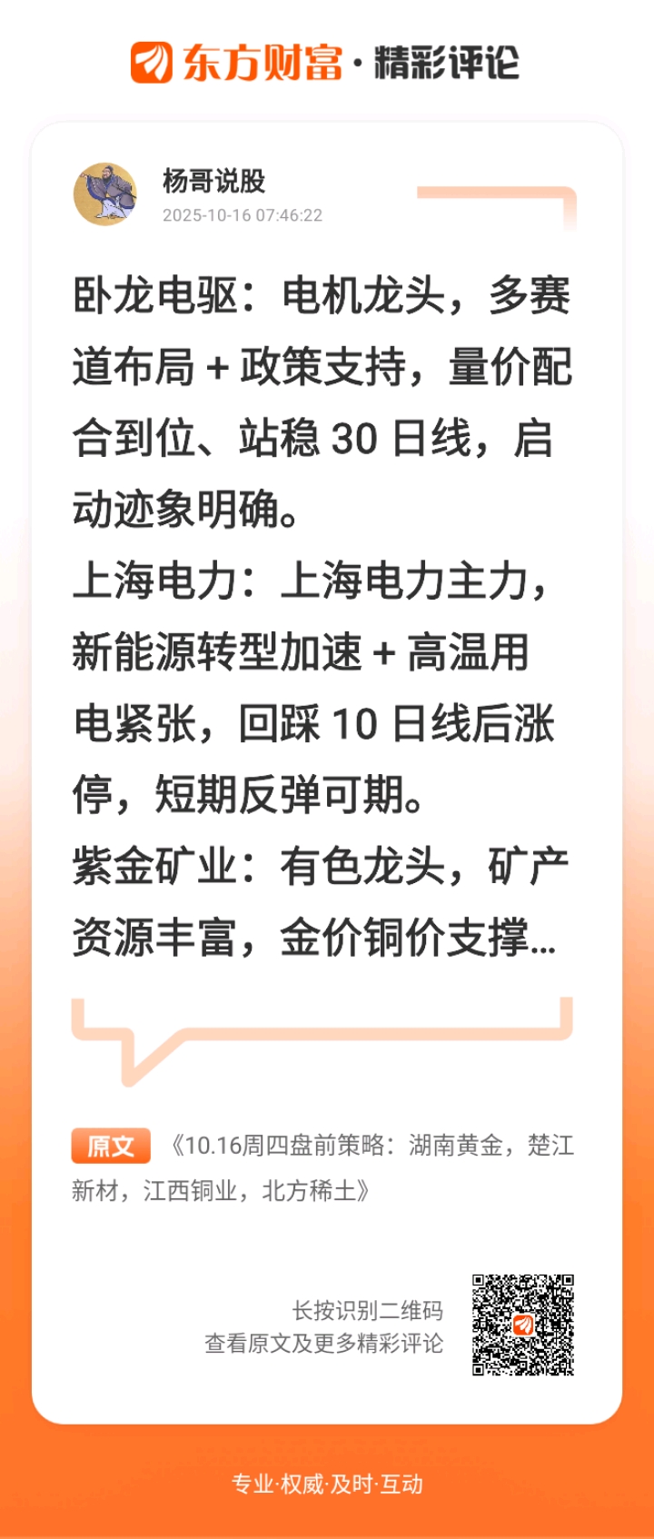 $楚江新材(SZ002171)$:楚江新材今日冲高后震荡下行,虽小幅收涨但抛压显现。仍看好其明天走势,公司基本面稳健,新材料领域需求持续增长。预计今日早盘会先消化部分抛压,随后在行业景气度支撑下企稳回升。若能有效化解分歧、释放抛压,有望转强向上,后续上升空间值得期待。