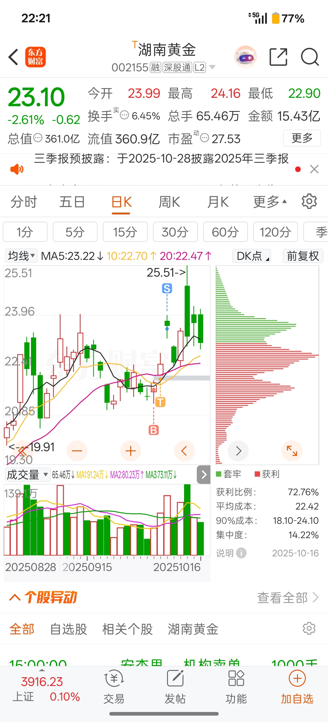$湖南黄金(SZ002155)$ 黄金涨一周了,没想到我卖了还能有低点,有品