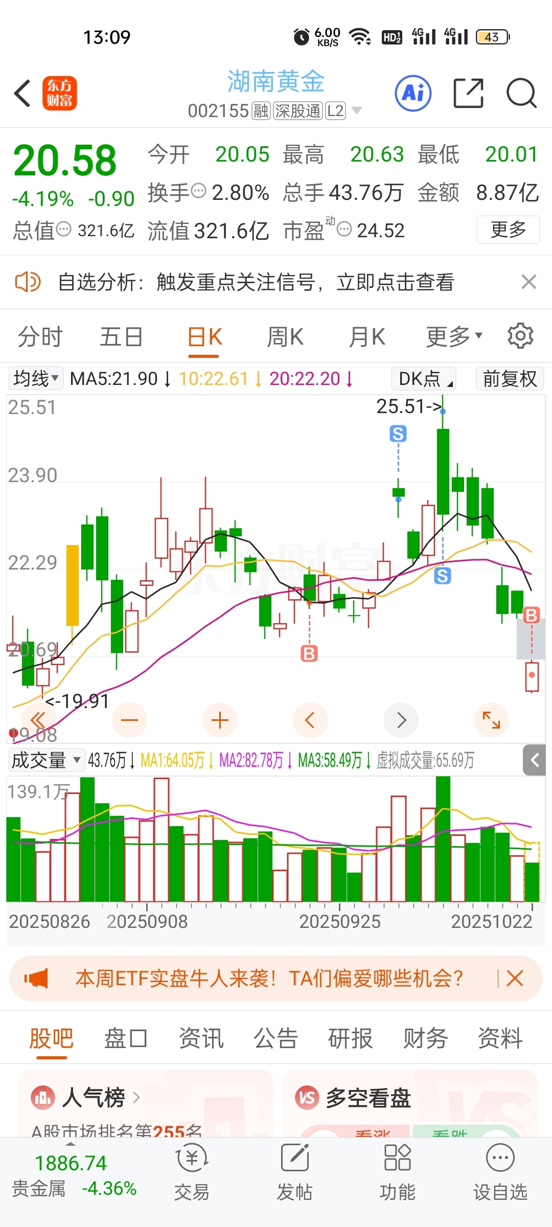 $湖南黄金(SZ002155)$ 我知道你们最近亏的很惨,上次我卖到了最高点,这次我又回来啦,哈哈,我真是个大聪明