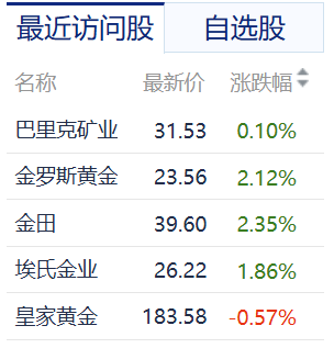 昨夜美股黄金股票收盘: