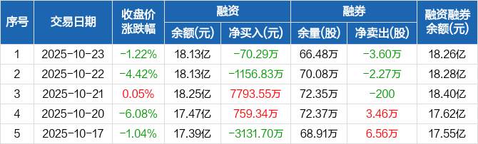 湖南黄金:融资净偿还70.29万元,融资余额18.13亿元(10-23)