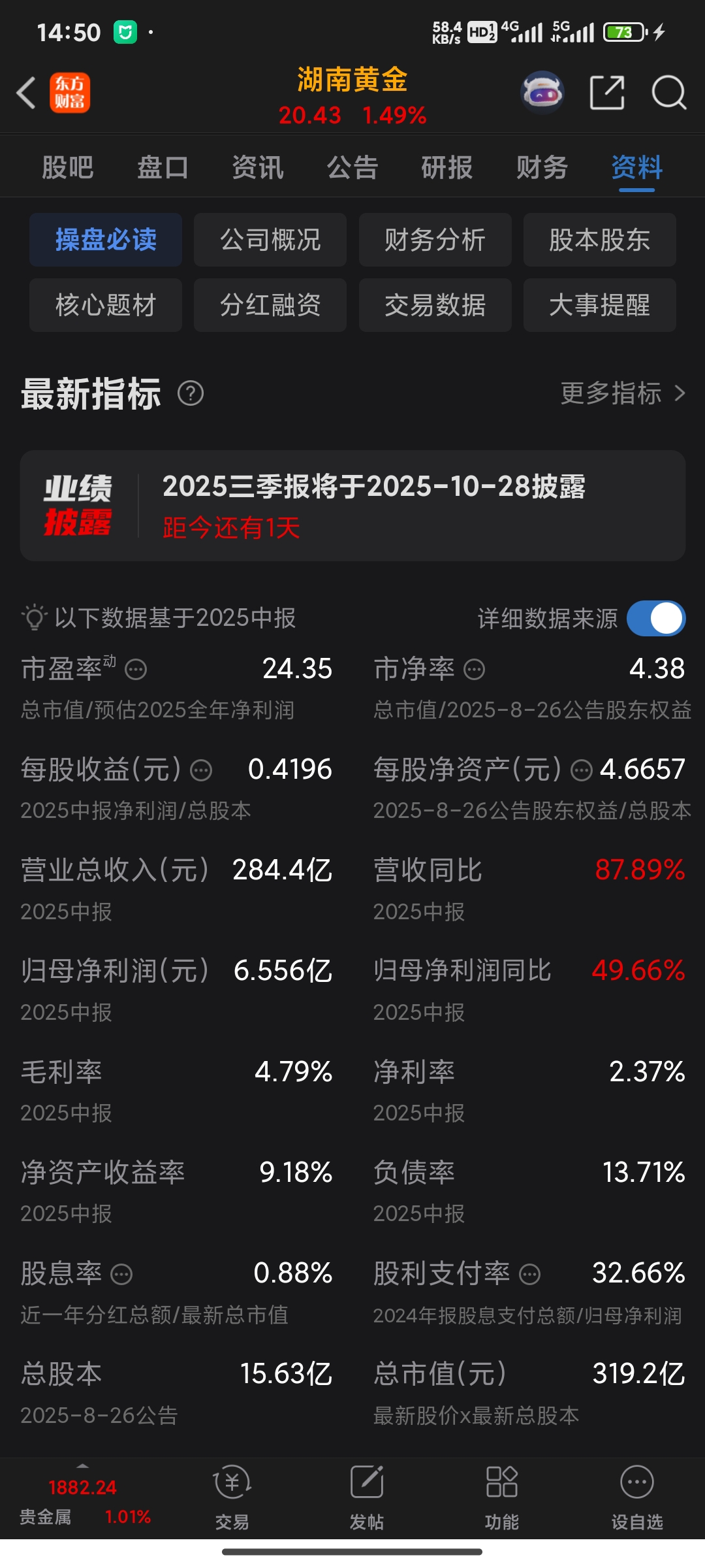 $湖南黄金(SZ002155)$ 对比中金黄金,湖南黄金的盘子小66%。也就是只有1/3的盘子。对比中金黄金的价格22.95元,狐金应该在69~72元才合理。如果加上后期1000吨的黄金储备。胡金市值可能超过紫金矿。