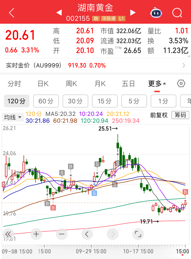$湖南黄金(SZ002155)$ 24.98卖的,我今天又回到湖金了