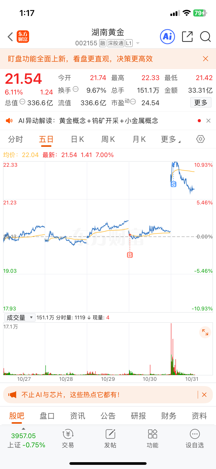 $湖南黄金(SZ002155)$ 留下的发财
