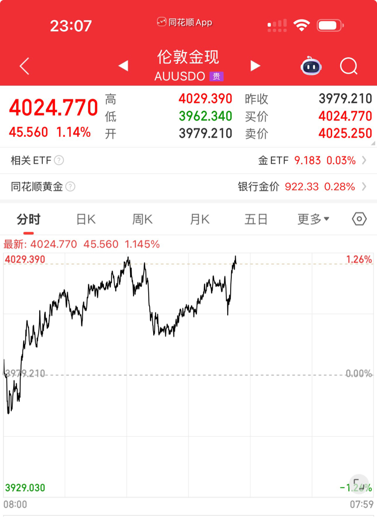$湖南黄金(SZ002155)$ 看看国际金价,该涨还得涨。