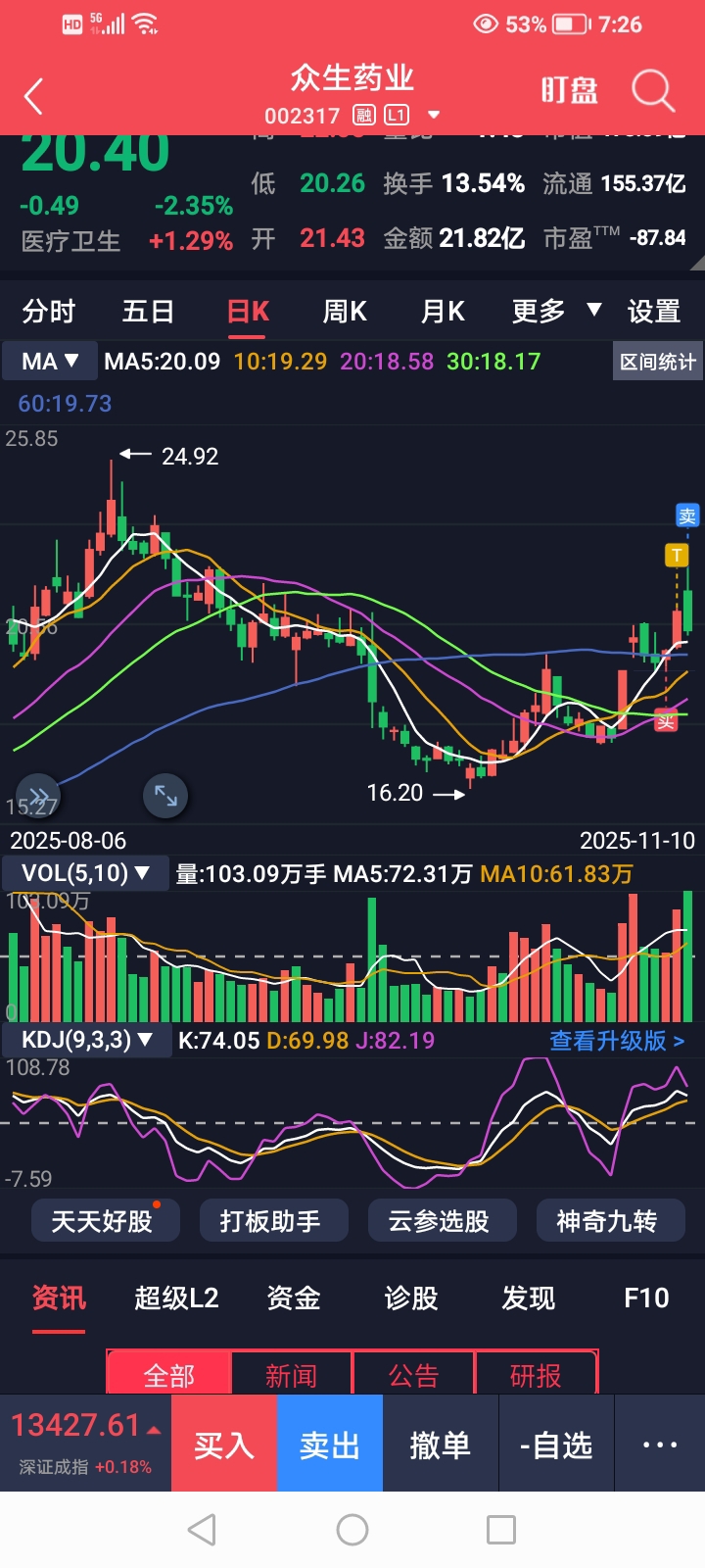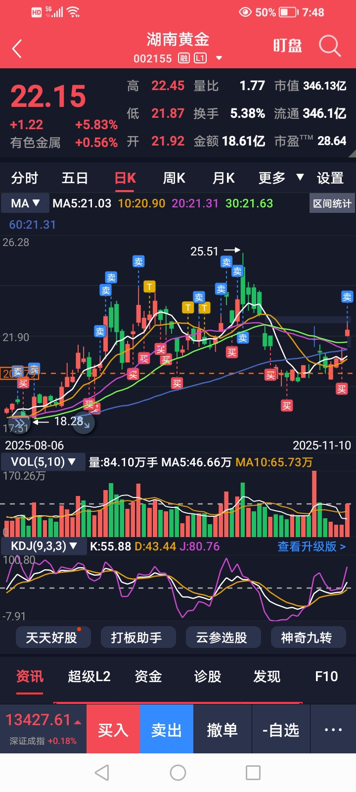 $湖南黄金(SZ002155)$ 年底行情,高位行情,电风扇行情。赚钱不卖,讲情怀,讲格局,伤害的是自己感情,损失的口袋里的银子。太看好湖南黄金,但也把周五加仓卖了。众生药业清了。