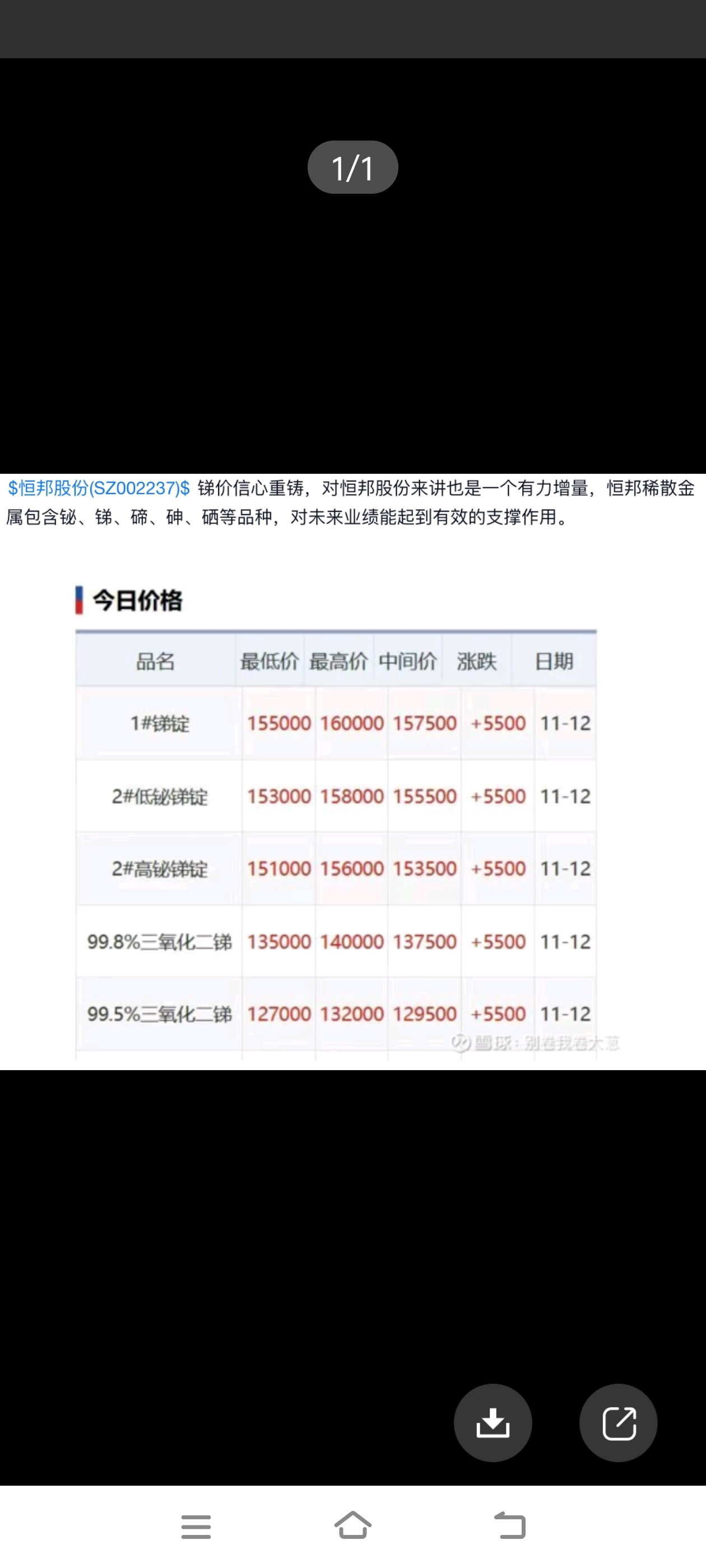 $湖南黄金(SZ002155)$ 国内锑开始涨价了,明天涨停
